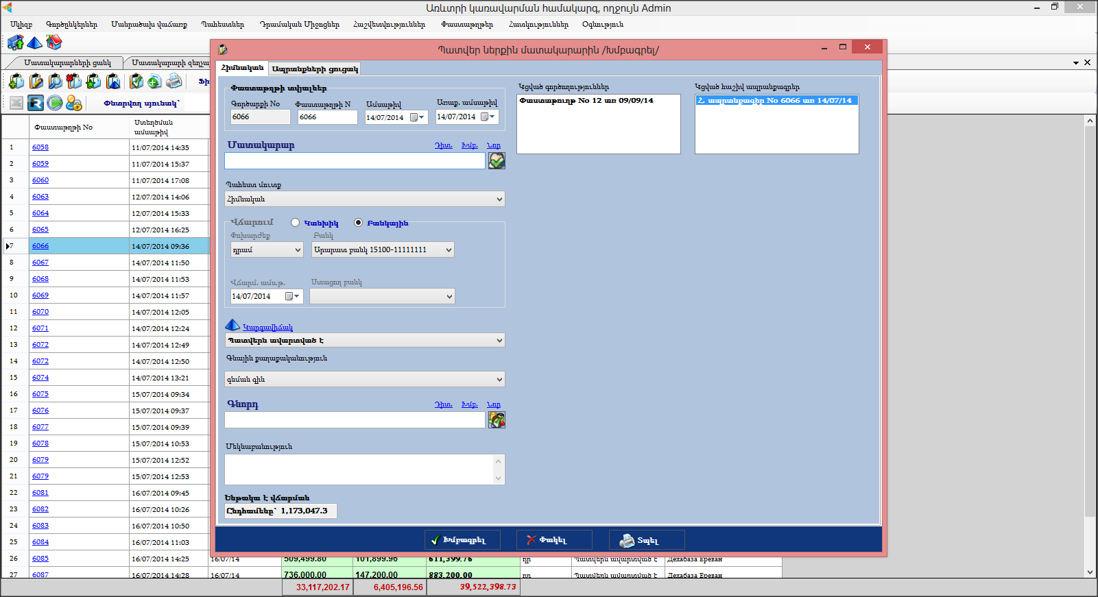 Մատակարարներին տրվող պատվերների գրանցումը շատ կարևոր գործառույթ է, այն անհրաժեշտ որպեսզի դուք վարեք պատվերների պատմությունը, տեղեկացված լինեք սպասվելիք ապրանքների մուտքերի վերաբերյալ